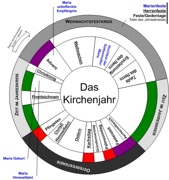 Quelle und weiterführende Erläuterungen: www.katholisch.de/glaube/unser-kirchenjahr