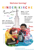 Jeden ersten Sonntag im Monat (außer Sommerferien) sowie an allen Sonntagen der Advents- und Fastenzeiten bieten wir parallel zum Gemeindegottesdienst um 9:00 Uhr Kinderkirche im Gemeindezentrum an. Beginn und Abschluss finden in der Kirche statt. Eingeladen sind auch die Kleinsten. Wer sich nicht allein traut, darf gerne von Erwachsenen begleitet werden.