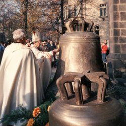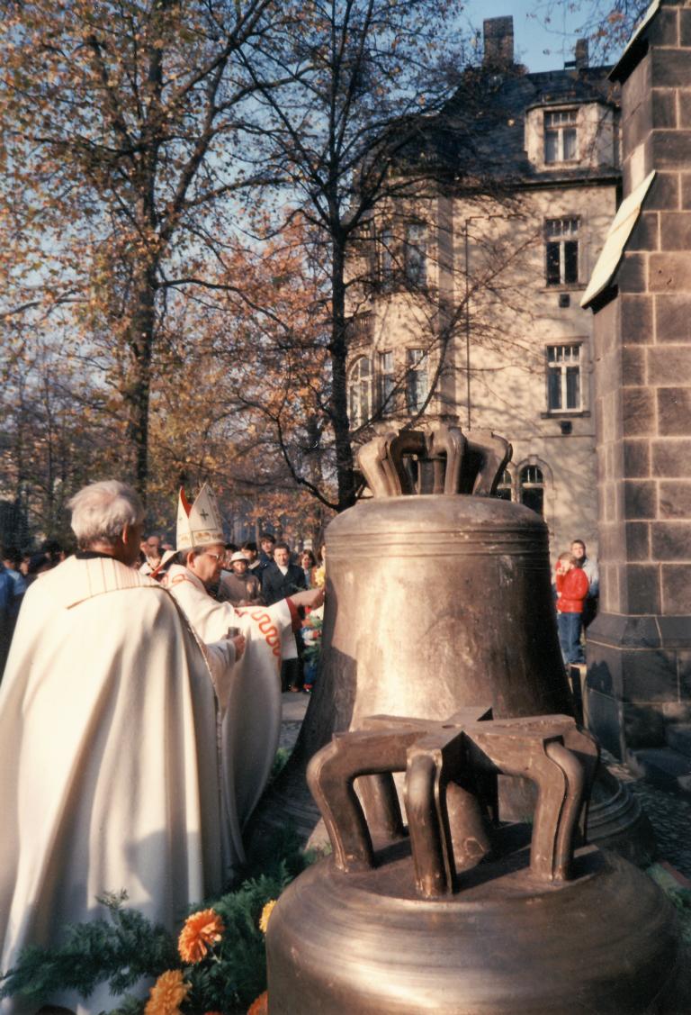 Nach 1945 erhielt der Glockenturm des katholischen Gotteshauses, der wegen des kriegsbedingten Einschmelzens von Glocken kein vollständiges Geläut mehr aufwies und neue Glocken benötigte, unter anderem leihweise zur Ergänzung auch eine Glocke aus der zerstörten evangelischen Andreaskirche, die den Angriff überstanden hatte. Auch wenn diese Glocke nicht ideal in das Klangbild der anderen Glocken passte, so blieb das "ökumenische Geläut" jedoch bis 1990 erhalten.
