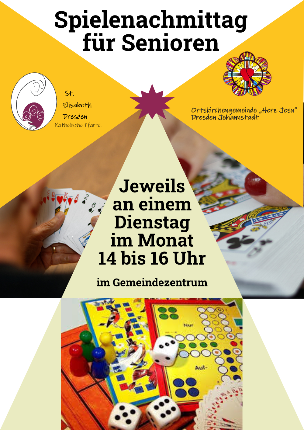 | Spielenachmittag für Senioren | jeweils an einem Dienstag im Monat | 14.00 Uhr bis 16.00 Uhr |
