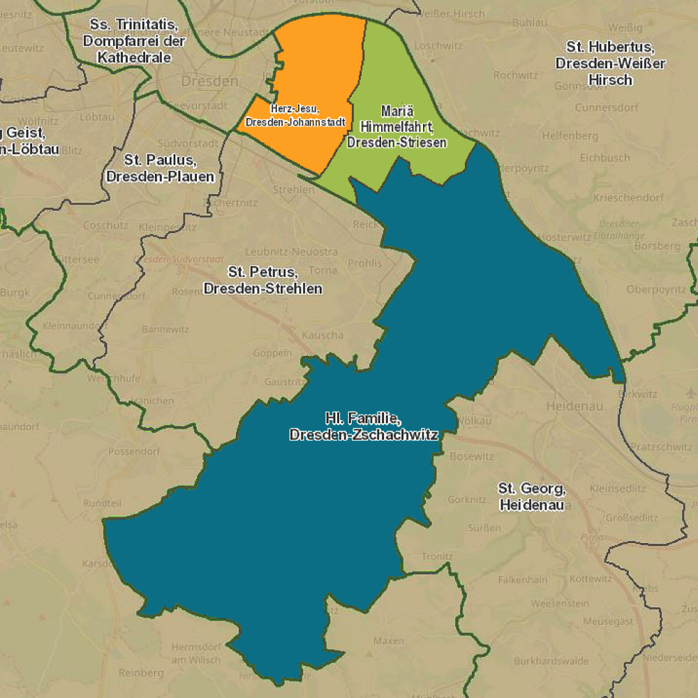 Die Pfarrei "St. Elisabeth" wurde am 7. Juni 2020 gegründet. Sie ist der Rechtsnachfolger der drei bisherigen Dresdener Pfarreien "Herz Jesu" Johannstadt, "Mariä Himmelfahrt" Striesen und "Heilige Familie" Zschachwitz, die jede auf eine gut 100-jähige Geschichte zurückblicken konnten. Nun schauen wir auf eine gemeinsame Zukunft, wobei die bisherigen Pfarreien als drei Ortskirchengemeinden die starken Säulen der Pfarrei bilden.
