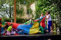 Den Beginn unseres Sommerfestes am 19. Juni 2022 bildete ein buntes Programm im Garten der Stephanuskirche, welches die Kinder in zwei Projektwochen zusammengestellt hatten. Neben musikalischen Darbietungen gab es ein Theaterstück, welches sich die Kinder selbst ausgedacht hatten. Ebenso zeigten Zauberer und Akrobaten beeindruckende Kunststücke . Weiße Schwäne begeisterten mit einem Tanz mit weißen Tüchern das Publikum.
